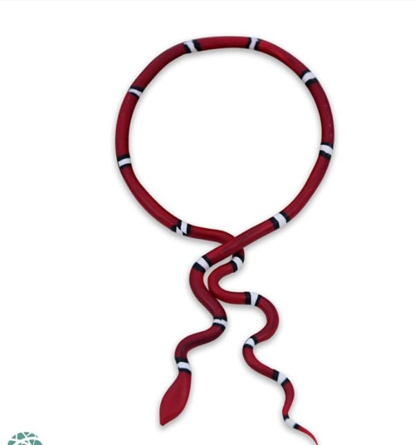 Made with precision and artistry, this necklace combines elegant black tones with striking red and white patterns, creating a powerful visual statement. The serpent’s curves embody the cycles of life and the sacred connection between the physical and the spiritual realms.