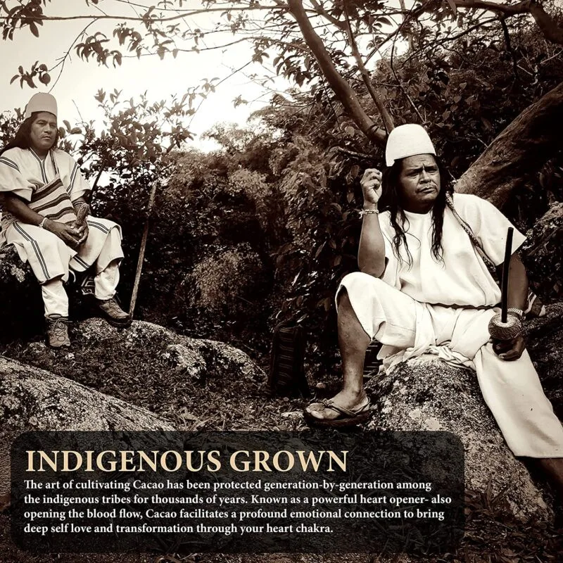 Ceremonial Cacao from Origen Cacao is sourced directly from the Arhuaca tribe of the Sierra Nevada in Colombia. This cacao is grown organically on ancestral land, the way it has been done for centuries. It is grown alongside other medicinal plants, and infused with the Arhuaca tribal. The Arhuaca believe that they can share the knowledge and teachings of their ancestors through their crops, that you, while drinking this cacao, can tap into their history and their “pensamientos”.