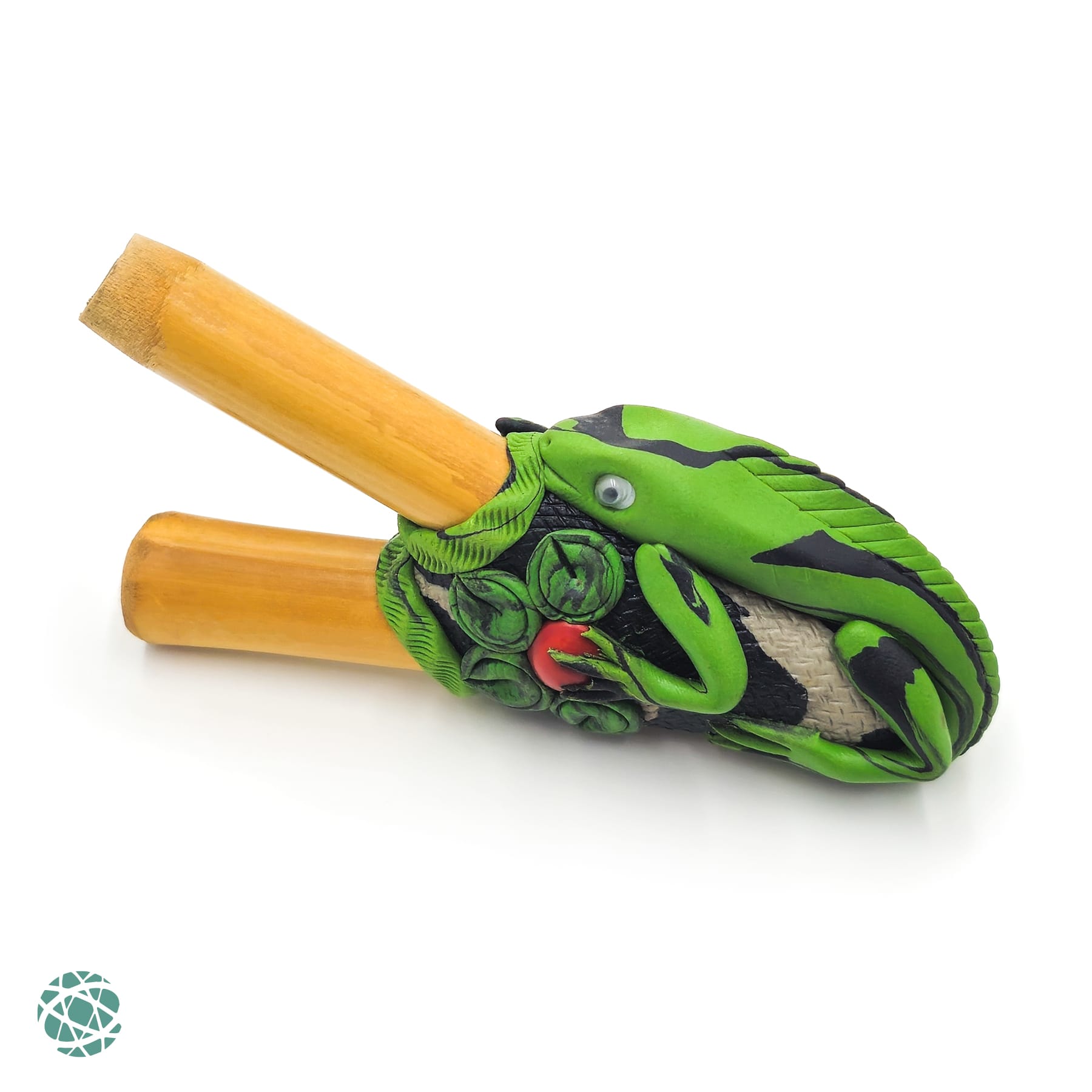 This model was made by our handicrafts experts at the Tete Pawã arts and crafts studio. They are located in the upper Juruá region of Marechal Thaumaturgo municipality, way up on the Amazon. The only way to get there is a two day boat journey or with a four seater airplane. They have been our close partners since 2014, always delivering state of the art handicrafts and their excellent Kuntanawa Rapés.