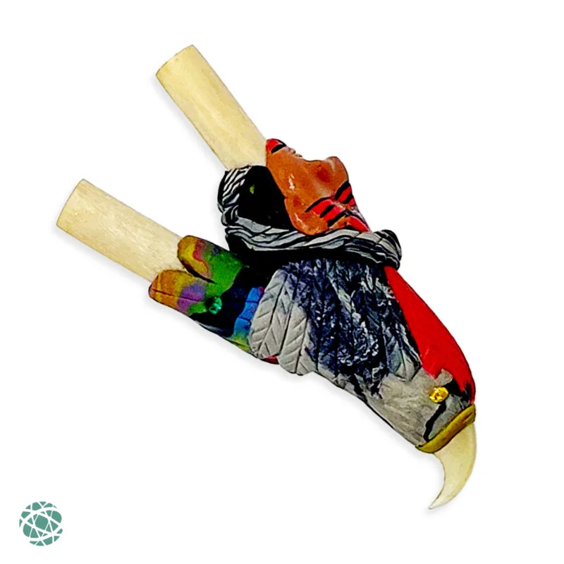The design represents the Sacred Trinity: a Shaman, an eagle and a boa constrictor – the most revered snake of sacred medicines.