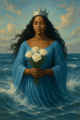 White roses are related to the feminine. They are a symbol of purity. The force of the queen of the sea, Yemanjá is her name in the West African Orixá tradition.