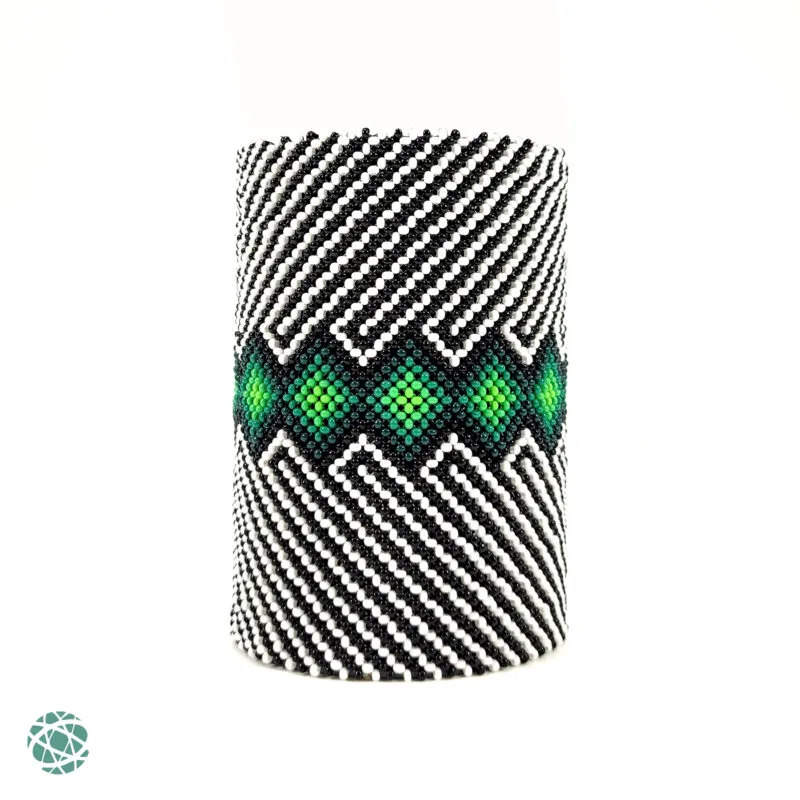 Handicrafts like a Yawanawá Wristband are of extreme importance to the communities both in the family and in the preservation of ancestral traditions. When a Kenê is imprinted each image has its own significance used in the form of body painting, everyday objects and ritual occasions. They combine history, memory and art and have sacred meaning, creating the connection with forest beings, the ancestral force, invoking courage, strength, power and wisdom. It is a language of great importance for the artistic and cultural heritage of these peoples, suggesting a present exchange, between ways of observing, experiencing and understanding the world.
